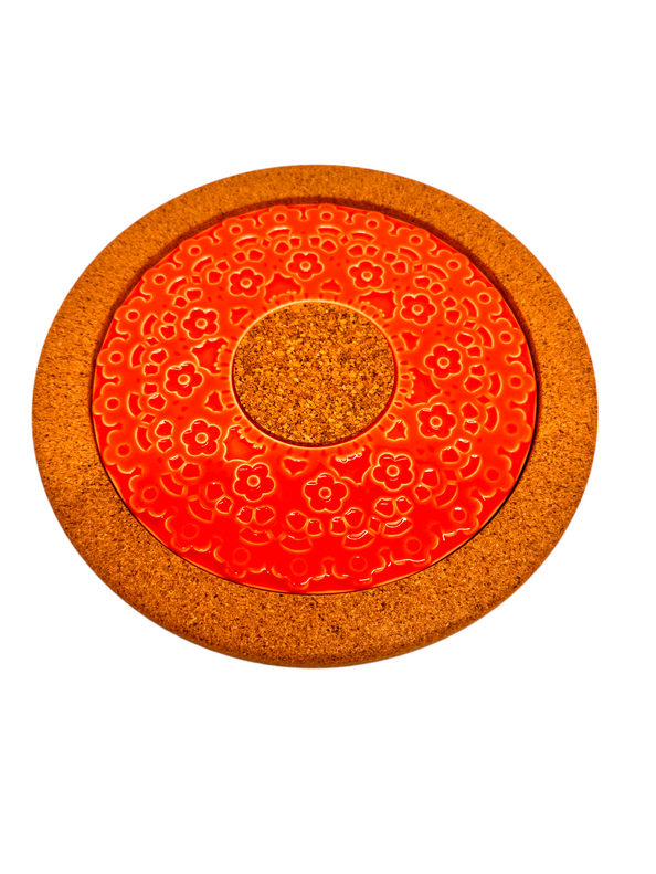Elevate your kitchen decor with our 19cm Round Cork and Ceramic Trivet, boasting a vibrant "Coral" ceramic center that adds a touch of modern sophistication. Imported from Portugal, this trivet seamlessly blends durable cork with high-quality ceramic, providing a stylish and heat-resistant solution for protecting your surfaces from hot pots and pans. With its compact 19cm size, easy cleaning, and versatile design, this trivet effortlessly combines form and function, making it an essential accessory for any kitchen.