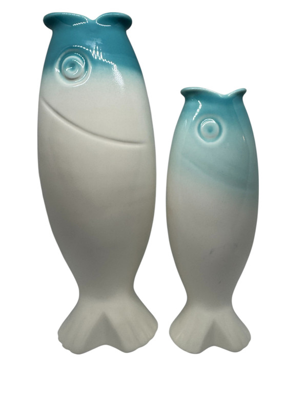 Handcrafted with a playful fish shape and a soothing white-to-turquoise ombré glaze, this ceramic vase adds coastal charm to any space. Perfect for fresh blooms or as a decorative accent, each piece is one of a kind with artisanal character.